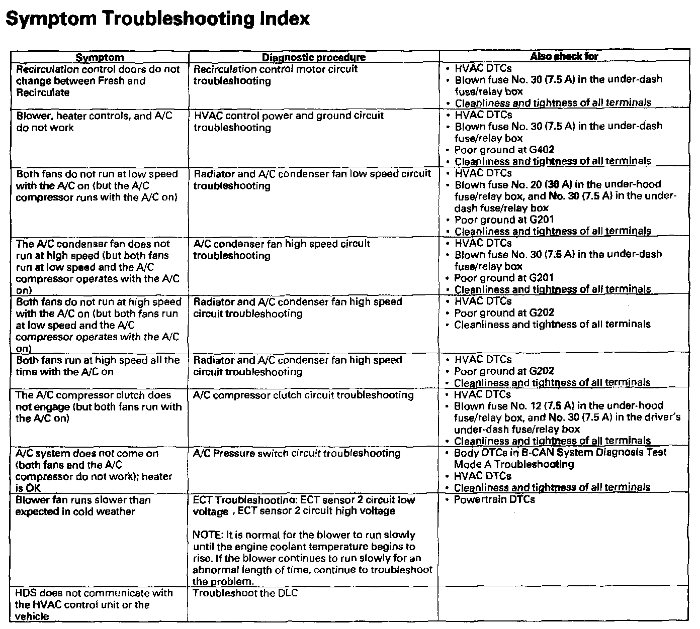 Symptom Troubleshooting Index: