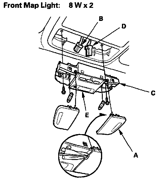 4. Disconnect the 10P connector (D) from the ambient light (E).