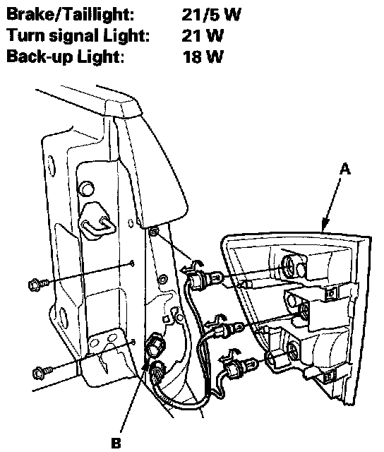 3. Carefully pull out the taillight, and disconnect the connector (B) from the taillight.