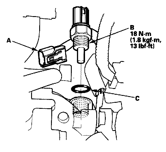 5. Install the sensor in the reverse order of removal with a new O-ring (C), then refill the radiator with engine coolant.