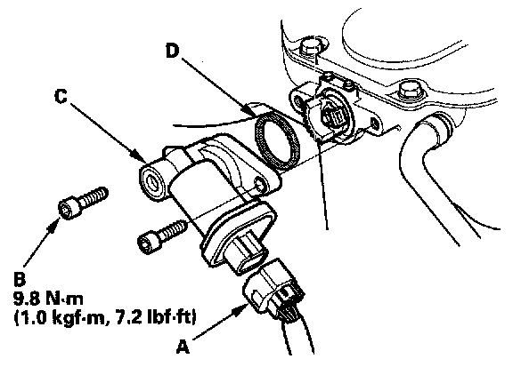 4. Install the actuator in the reverse order of removal with a new O-ring (D).