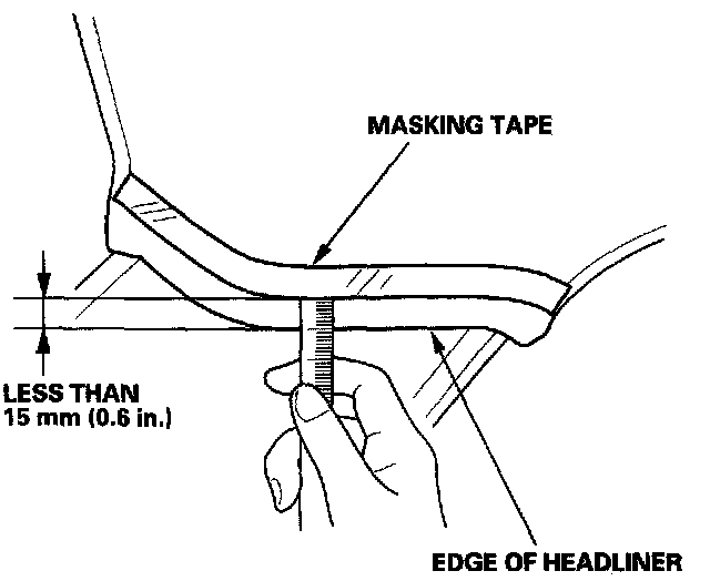 To prevent the side curtain airbag from deploying and damaging the pillar trim, the overlap between the headliner and pillar trim must be less then 15 mm. To check the overlap, do this: