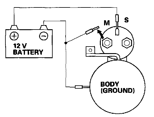 4. Disconnect the battery from the M terminal. If the pinion does not retract, the hold-in coil of the solenoid is working properly.