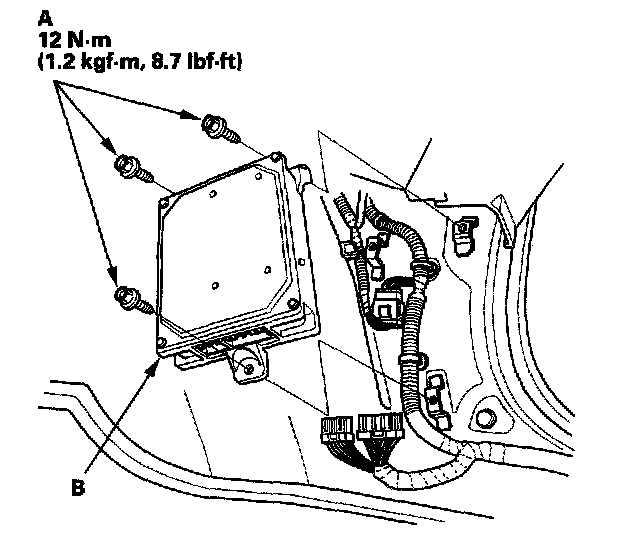 2. Remove the three bolts (A) from the VTM-4 control unit (B).