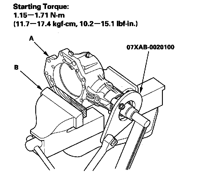 ^ Rotate the companion flange several times to seat the tapered roller bearings, then measure the starting torque.