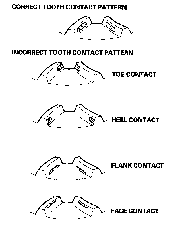 Flank contact must be adjusted within the limits of the transfer gear backlash. If the backlash exceeds the limits, adjust as described under Heel Contact.