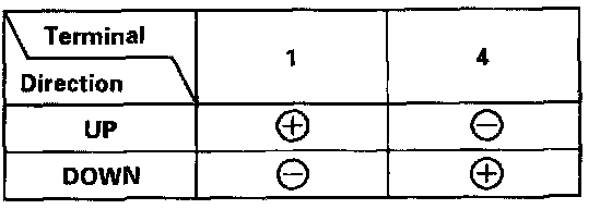 3. Test the motor in each direction by connecting battery power and ground according to the table. When the motor stops running, disconnect one lead immediately.
