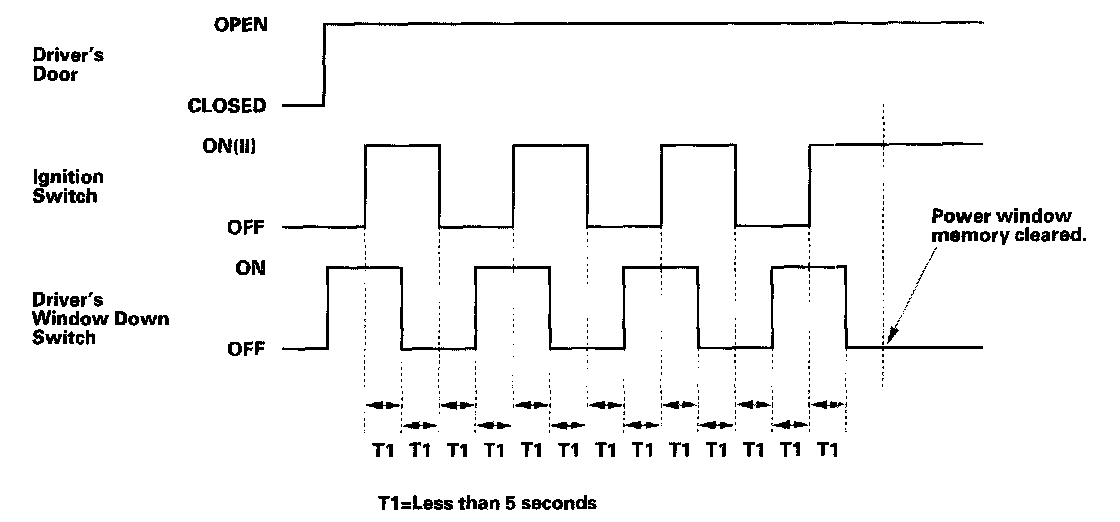 If the window still does not work in AUTO, repeat the procedure several times, paying close attention to the 5 second time limit between steps. If it still does not work, Go to B-CAN System Diagnosis Test Mode A.