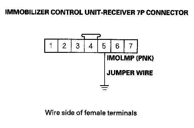 16. Using a jumper wire, connect the immobilizer control unit-receiver No. 5 (IMOLMP) terminal to ground.