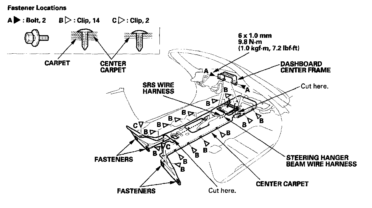 Center Carpet ReplacementSRS components are located in this area. Review the SRS component locations for the appropriate model.