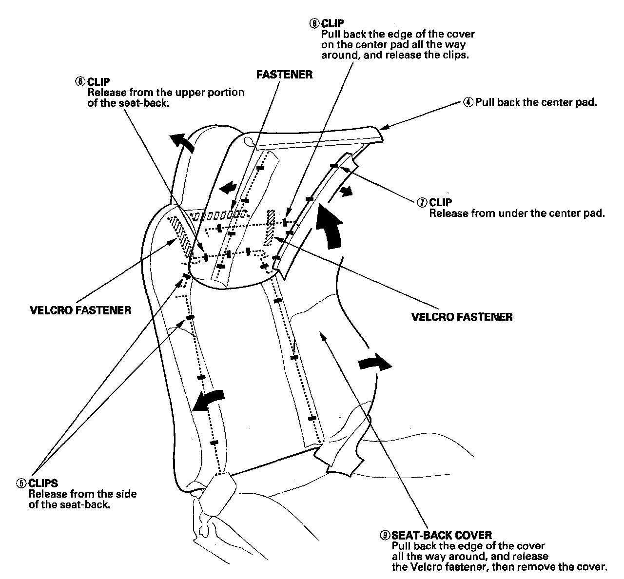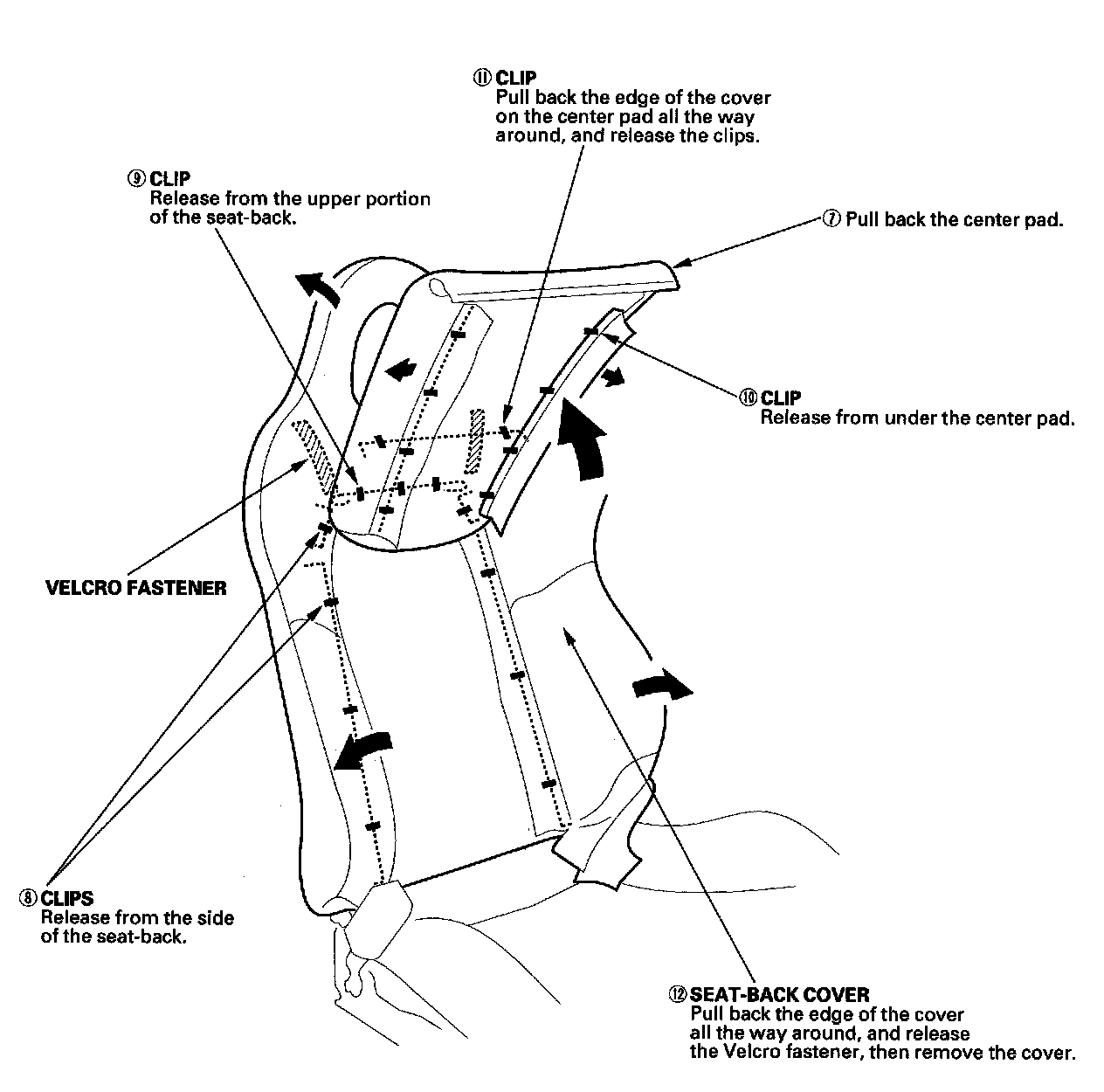 - To prevent wrinkles when installing a seat-back cover, make sure the material is stretched evenly over the pad before securing the clips, Velcro fasteners and hooks.