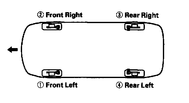 5. Repeat the procedure for each caliper until no air bubbles are in the fluid. Bleed the calipers in the sequence shown.
