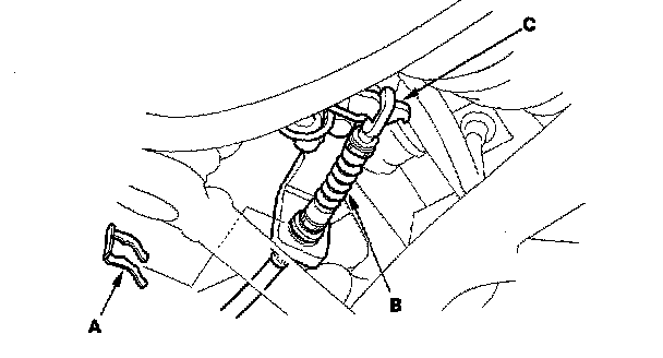 7. Disconnect the parking brake cable end from the parking brake arm (C).