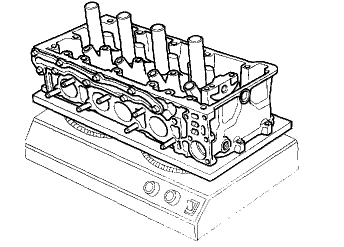 4. Use a hot plate or oven to evenly heat the cylinder head to 300°F (150°C). Monitor the temperature with a cooking thermometer. Do not get the head hotter than 300°F (150°C); excessive heat may loosen the valve seats.