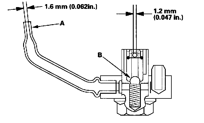 ^ Make sure the check ball (B) moves smoothly and has a stroke of approximately 4.0 mm (0.16 inch).
