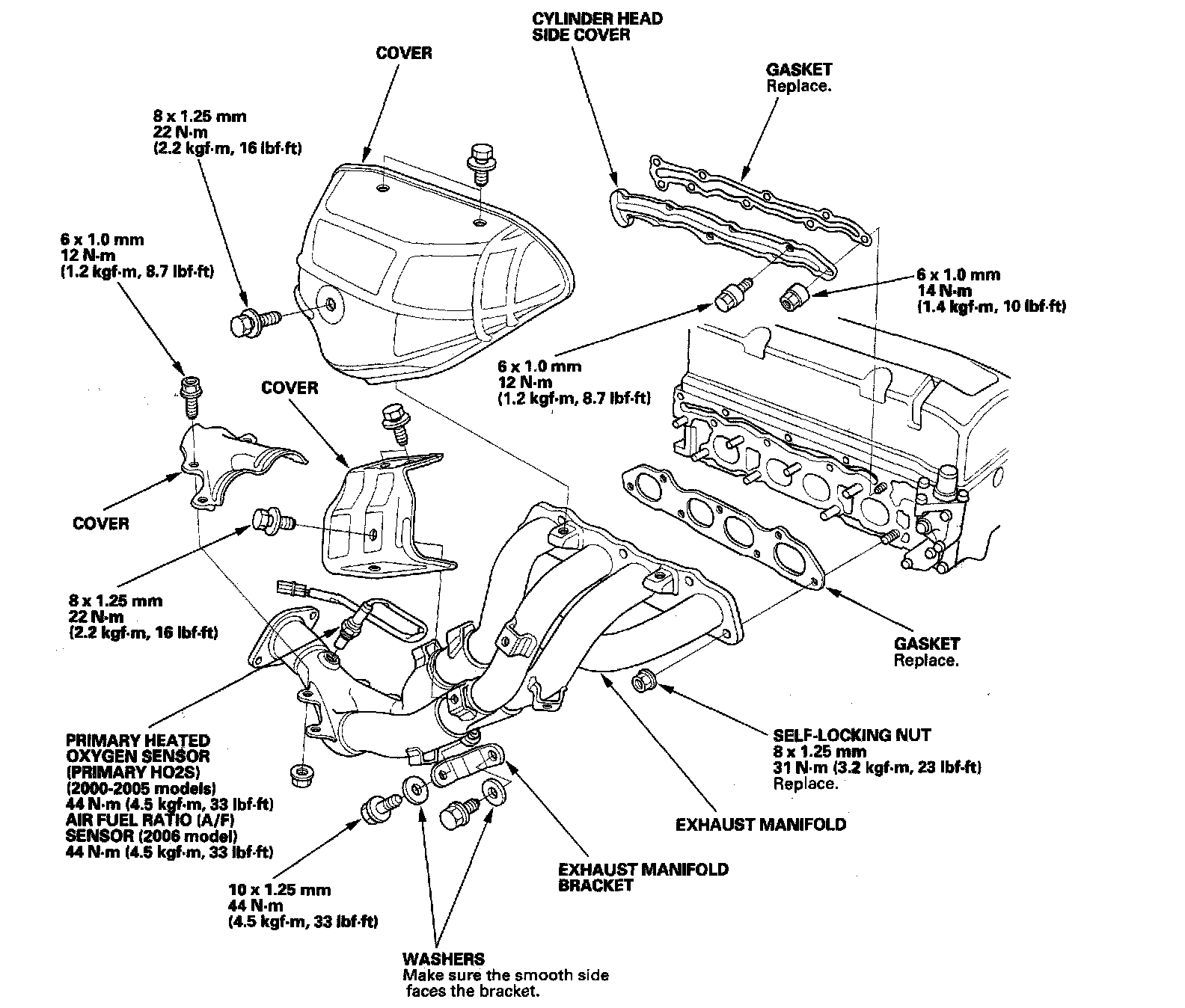 Use new gaskets and self-locking nuts when reassembling.