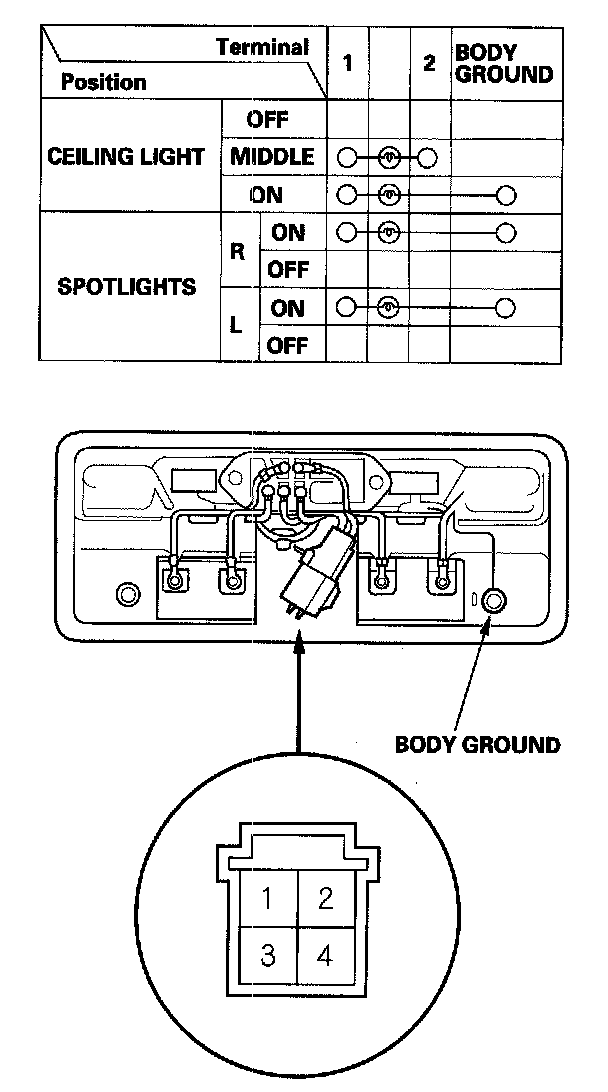Ceiling Light/Spotlight Test1. Turn the ceiling/spotlights switch OFF.
