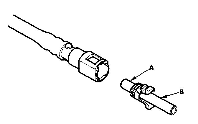 2. Insert a new retainer (A) into the connector (B) if the retainer is damaged, or after: