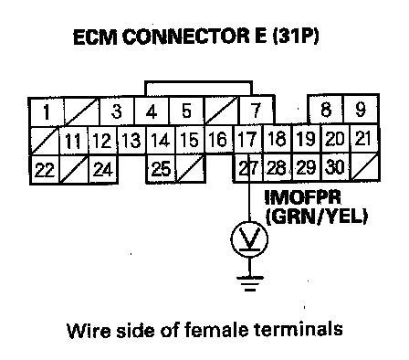 20. Turn the ignition switch ON (II), and measure voltage between ECM connector terminal E17 and body ground within 2 seconds.