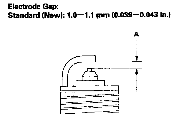 3. Do not adjust the gap of platinum tip plugs (A); replace the Spark plug if the gap is out of specification.