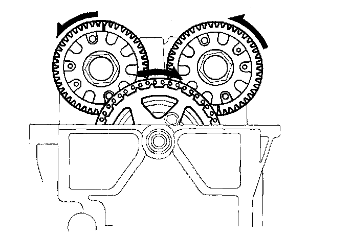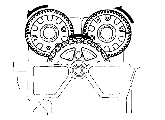 9. Rotate the crankshaft 180° clockwise (camshaft gears turn 90°).