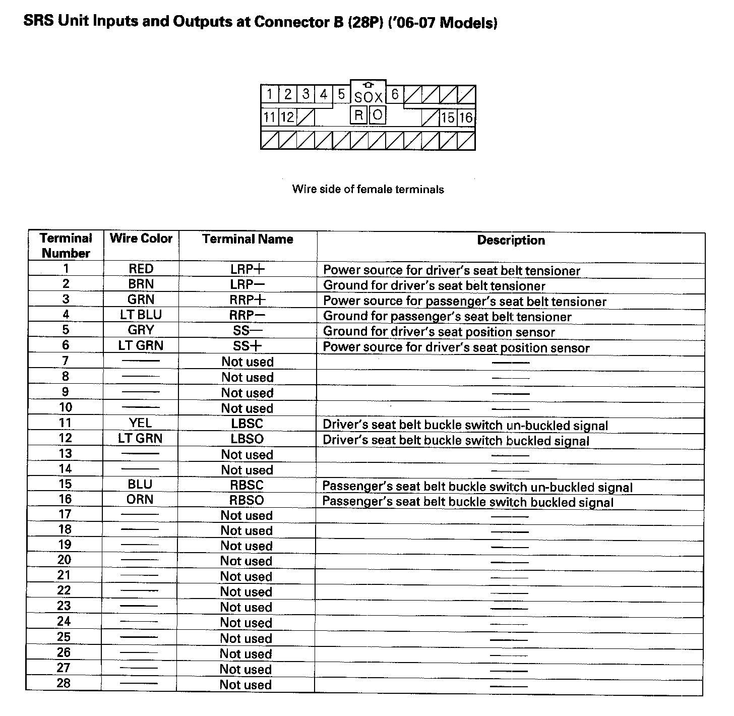 SRS Unit Inputs And Outputs At Connector B (28P):