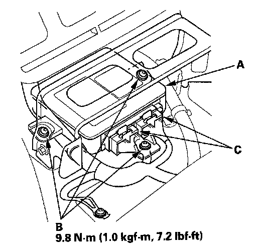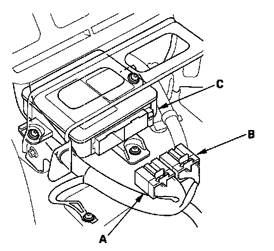 1. Install the new SRS unit (A) with new TORX bolts (B), then connect the connectors (C) to the SRS unit; push them into position until they clicks.