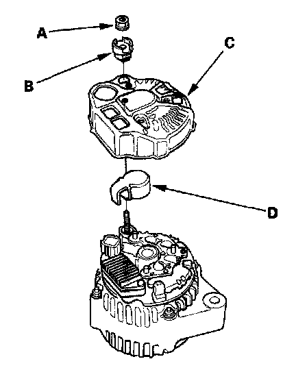 24. Reassemble the alternator in the reverse order of disassembly, and note these items: