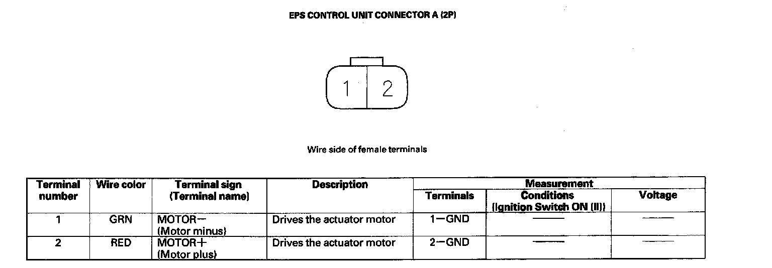 System DescriptionEPS Control Unit Inputs and Outputs for Connector A (2P):