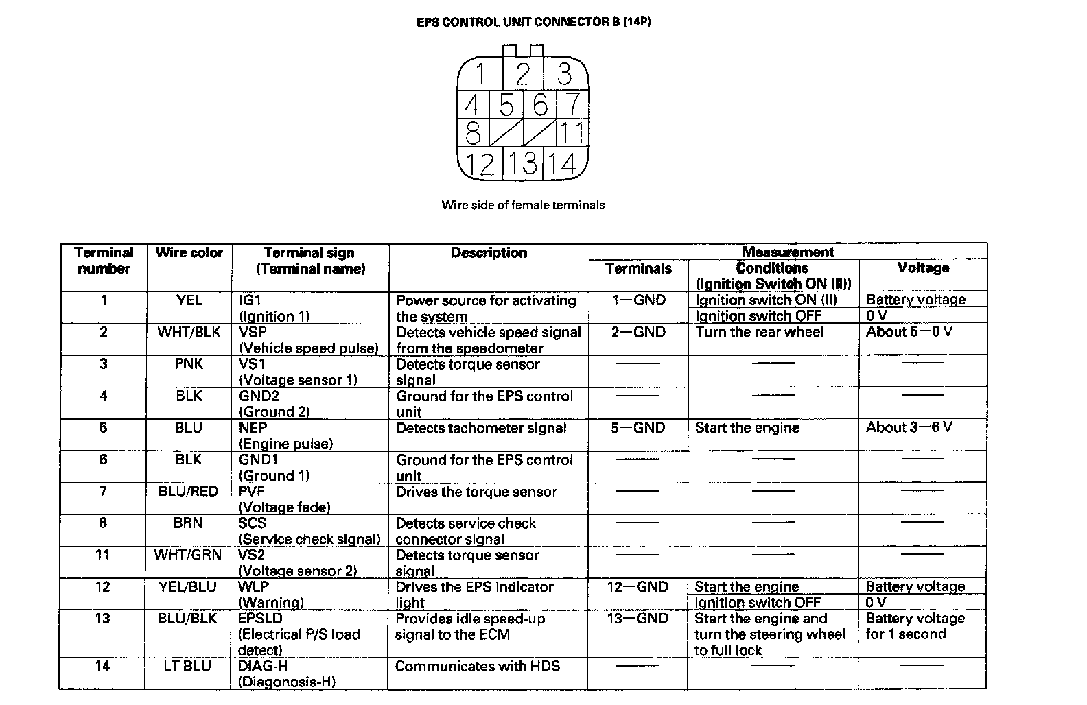 EPS Control Unit Inputs and Outputs for Connector B (14P):