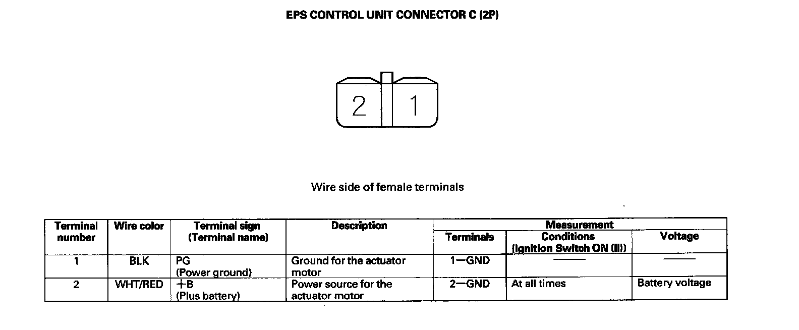 EPS Control Unit Inputs and Outputs for Connector C (2P):