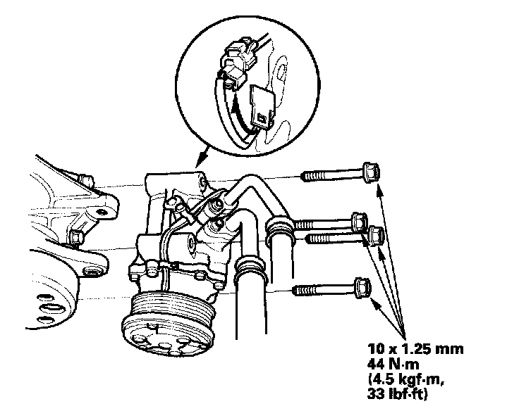 31. Install the A/C compressor, then connect the 1P connector.