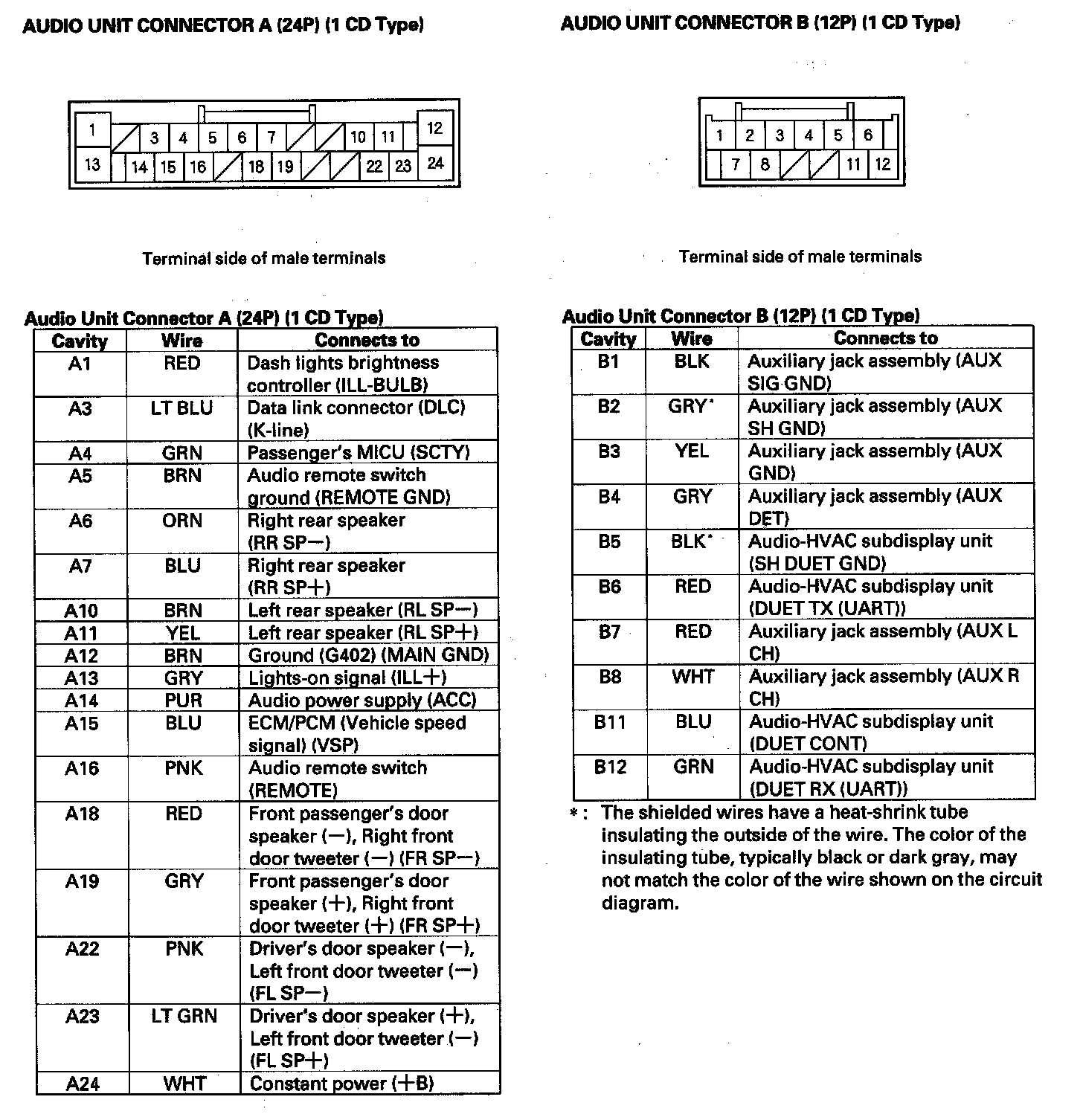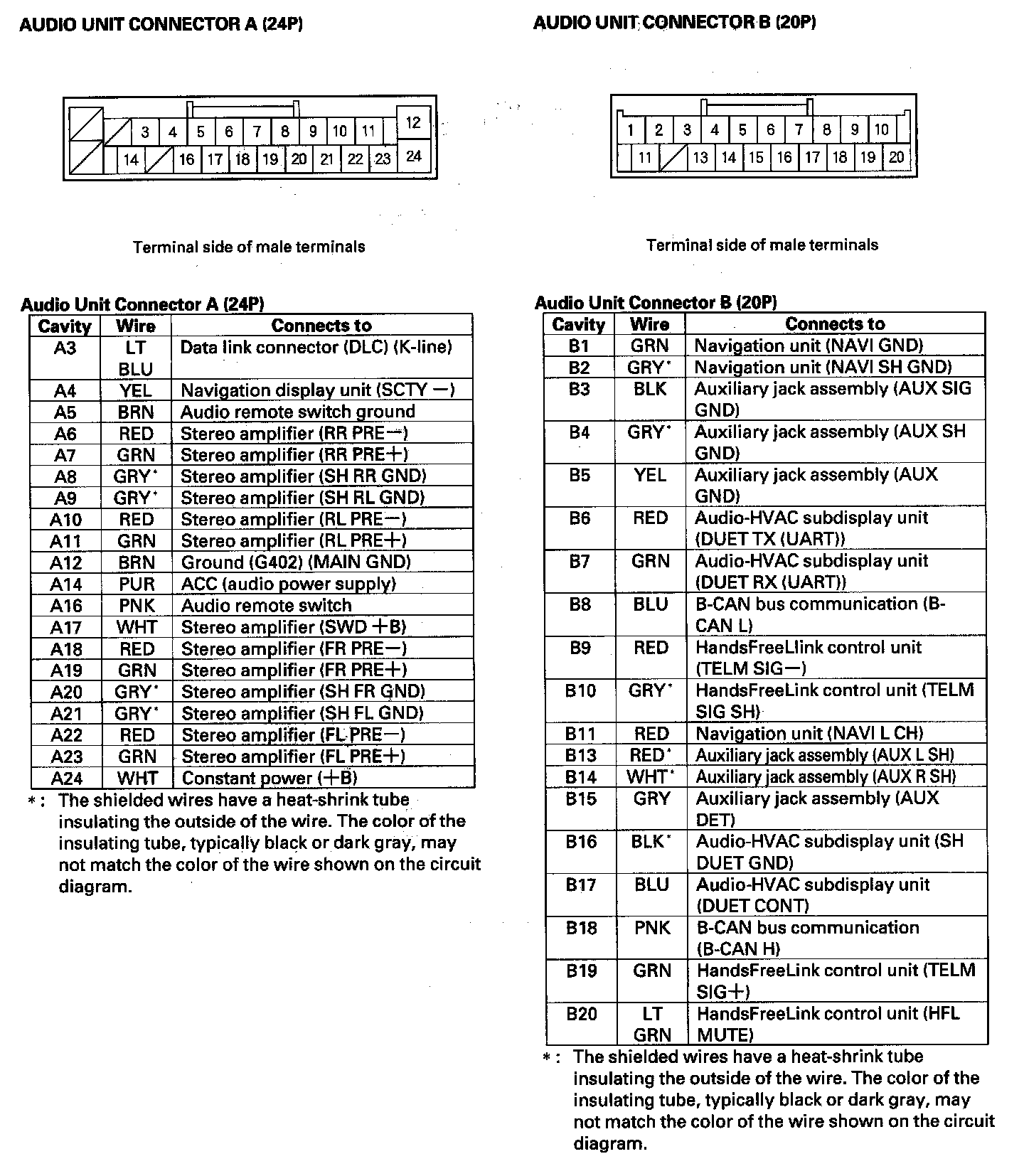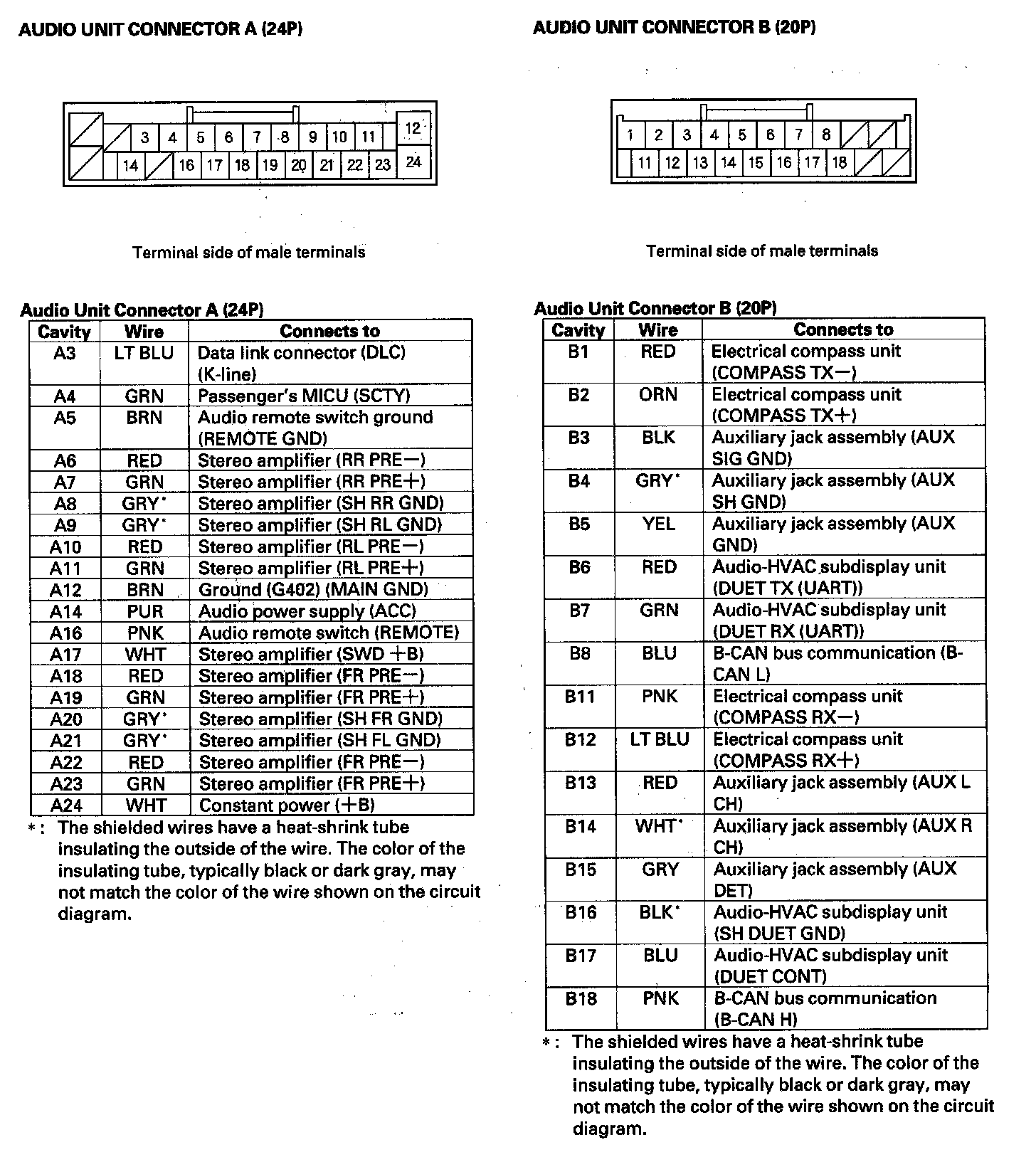 Audio-HVAC Display Unit Connector For Inputs And Outputs (Without Navigation System):