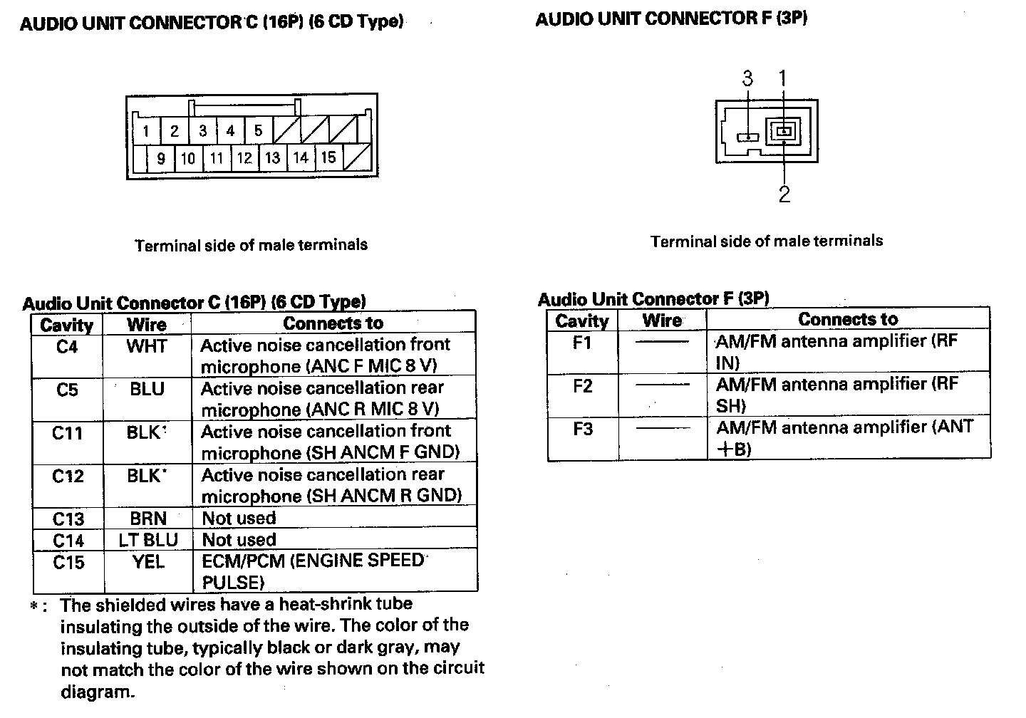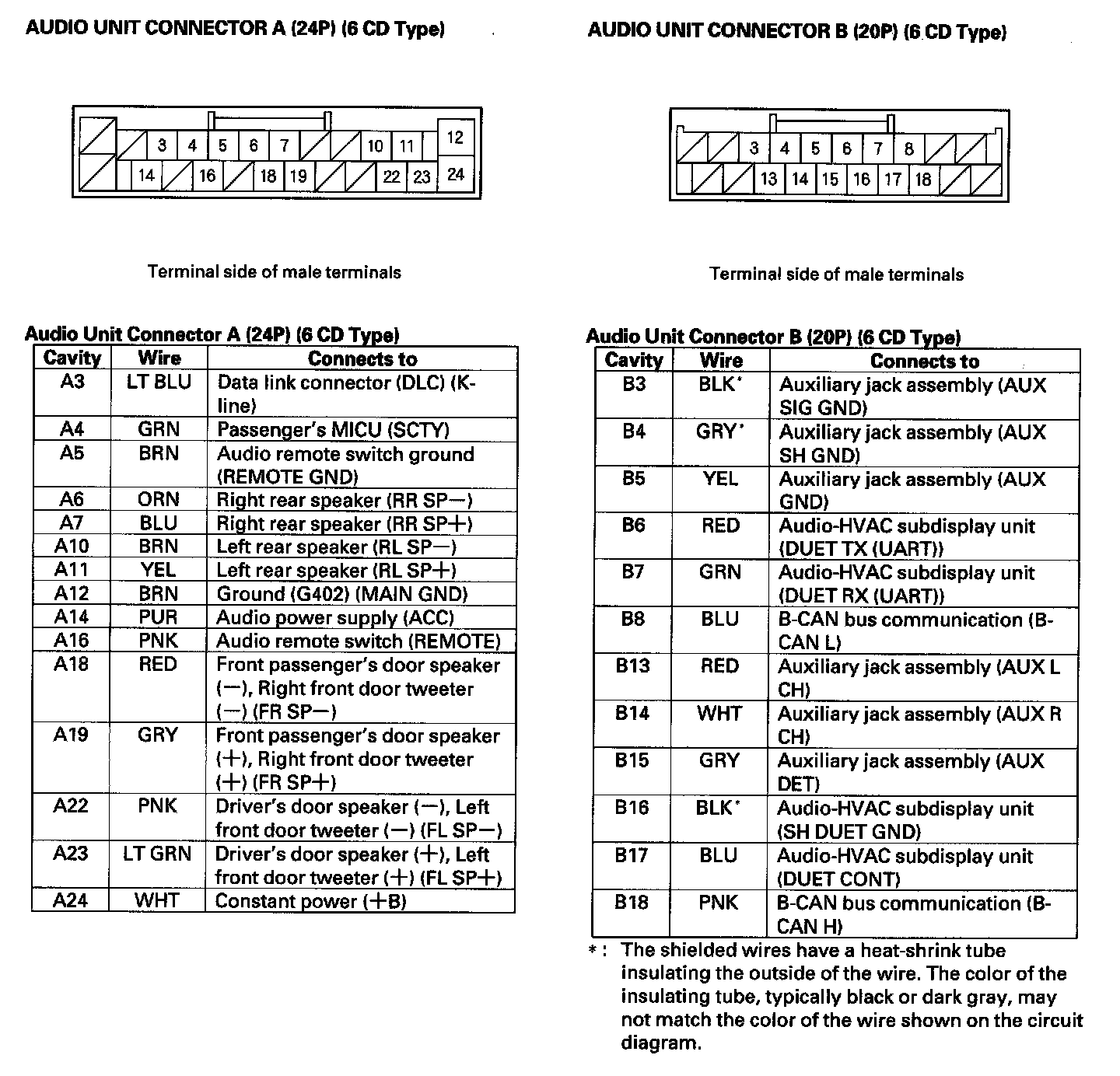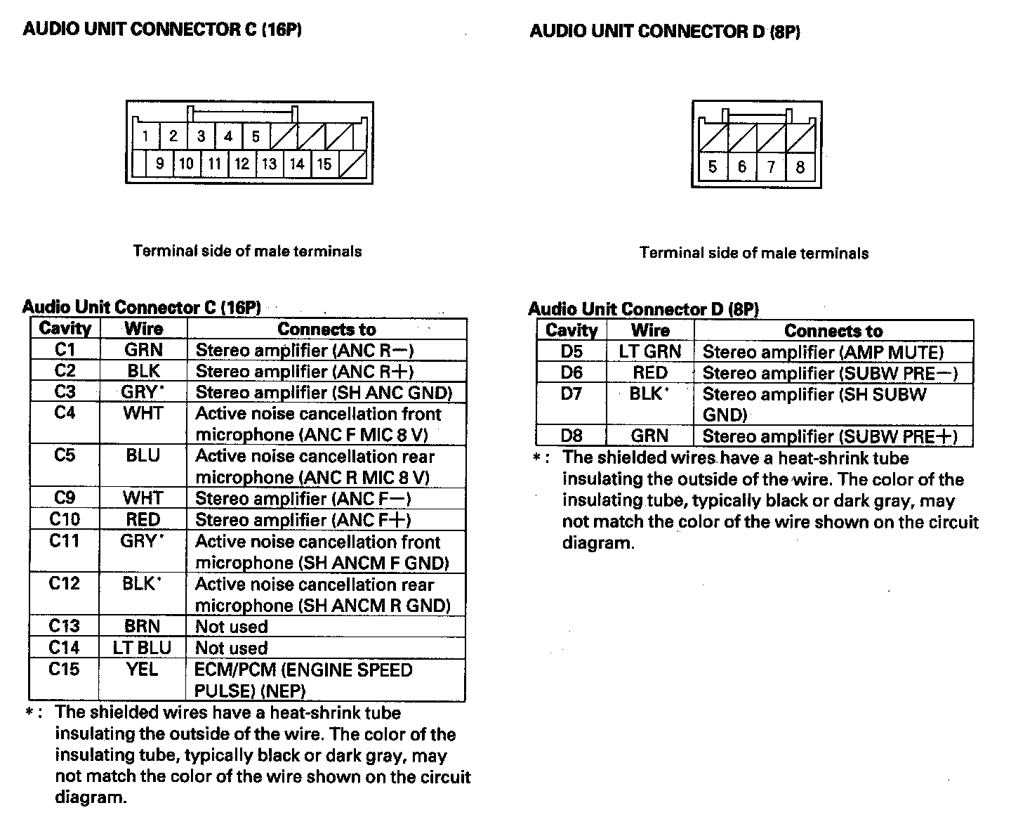 Audio-HVAC Display Unit Connector For Inputs And Outputs (Without Navigation System):