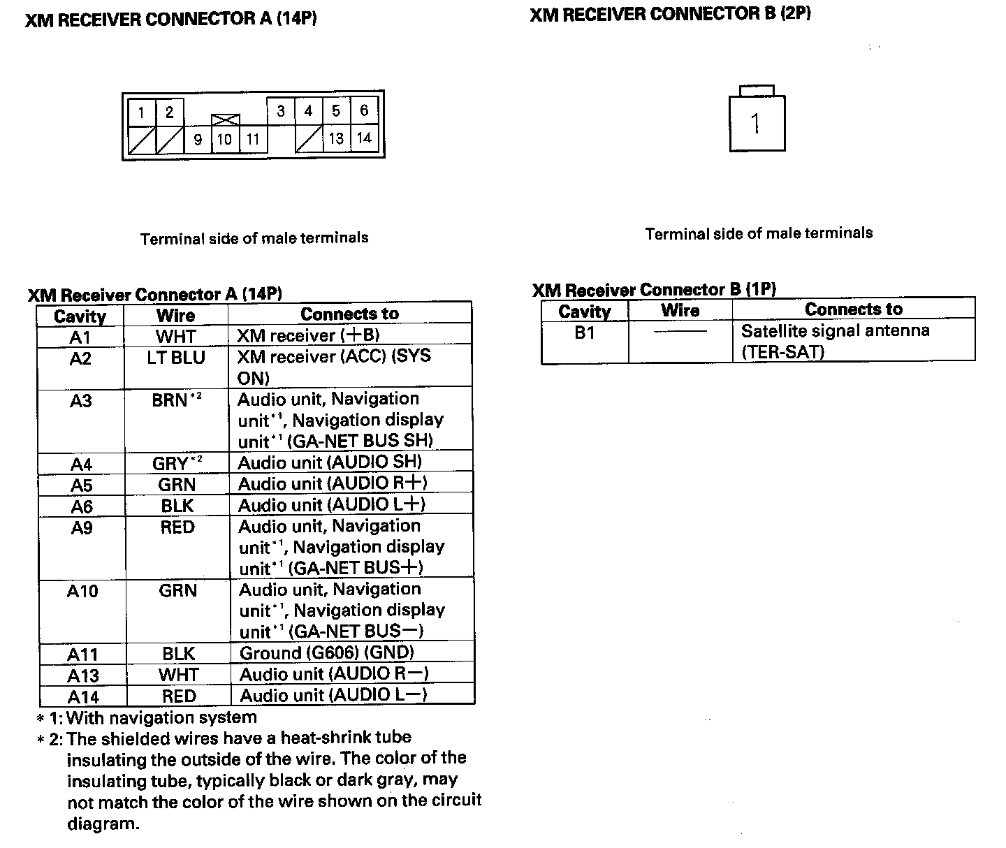 XM Receiver Connector For Inputs And Outputs (Part 1):