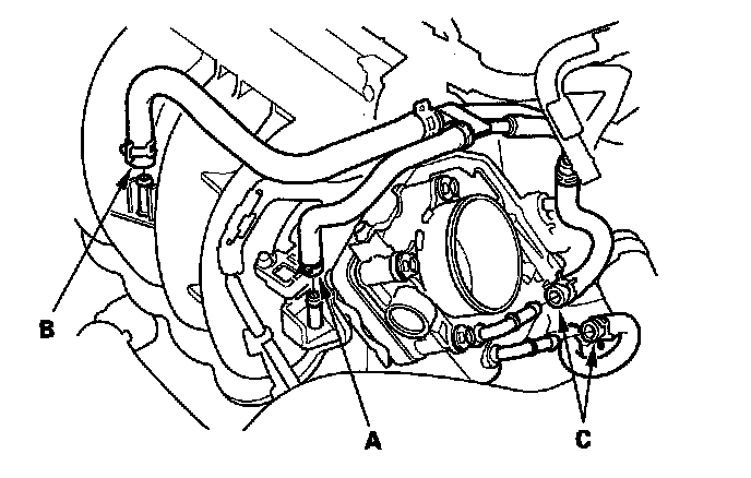 8. Remove the water bypass hoses (C), then plug the water bypass hoses.