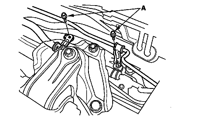 NOTE: Do not remove the TORX bolt (A) from the upper transmission mount. If the TORX bolt is removed, the upper transmission mount must be replaced as an assembly.