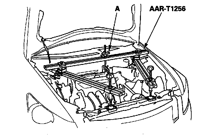 42. Install the engine support hanger (AAR-T1256), then attach the hook to the slotted hole in the engine hanger adapter. Tighten the wing nut (A) by hand to lift and support the engine/transmission.