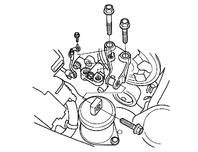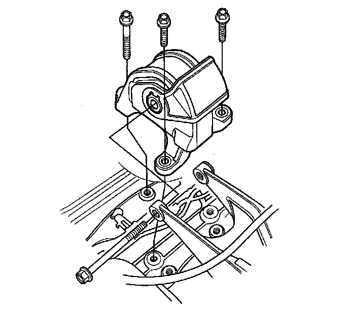 60. Remove the upper transmission mount bracket mounting bolts.