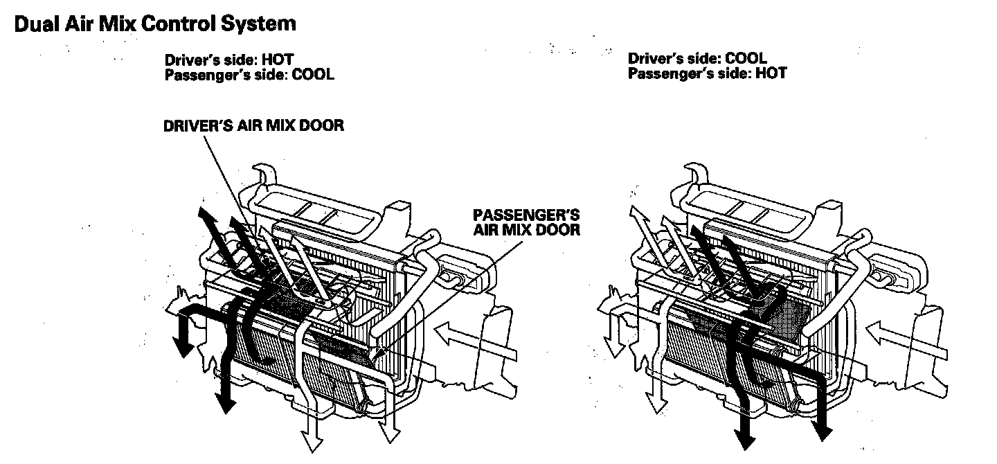 This system automatically controls the temperature and the vent mode of the air direction to the driver and passenger's side depending on the angle of the sun and the direction of the vehicle. It calculates information such as date, time, longitude, and latitude from the navigation system, as well as the irradiate strength of the sun from the sunlight sensor, to determine the appropriate mode position and temperature to be directed to each side.
