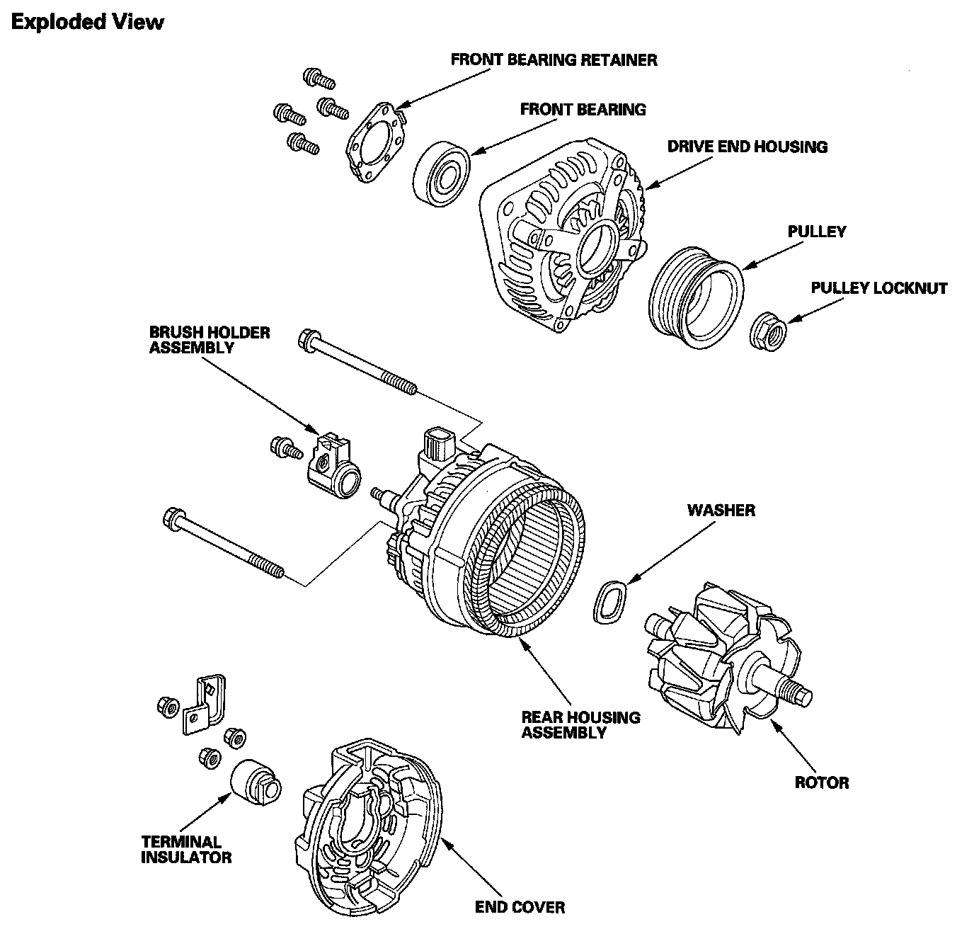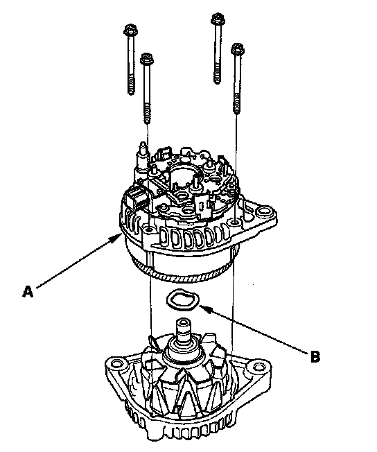 18. Put the rear housing assembly and drive end housing/rotor assembly together, and tighten the four through bolts.