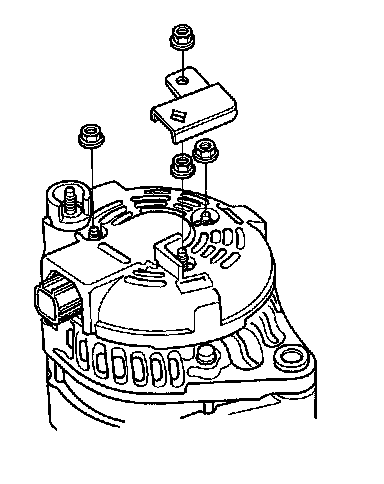 4. Remove the harness stay and the three flange nuts from the alternator.