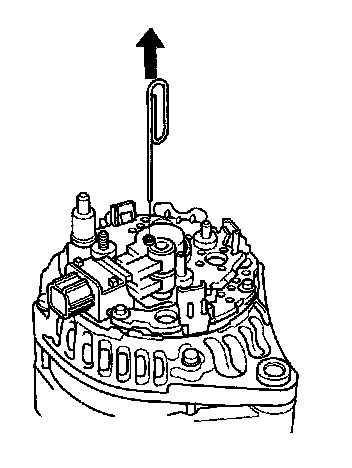 19. Push the brushes (A) in, then insert a pin or drill bit (B) (about 1.6 mm (0.06 in.) diameter) to hold them there.