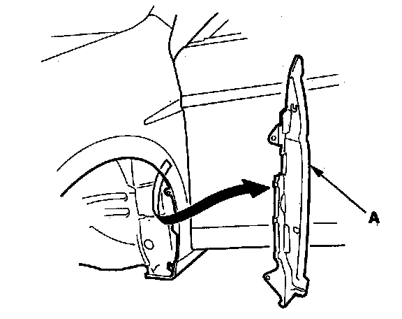 2. From the wheel arch, release the clips fastening the front fender fairing (A).