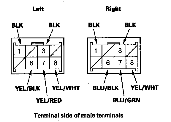 5. Record the power mirror 8P connector terminal locations and wire colors.