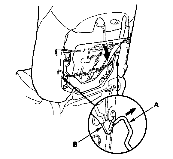 6. Release the lower wire (A) from both active head restraint links (B) of inside the seat-back.