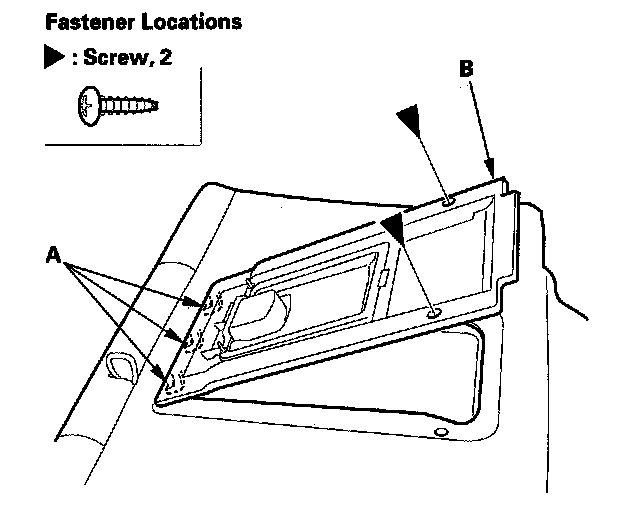2. Remove the screws, and detach the hooks (A), then remove the trunk pass-through lid (B).