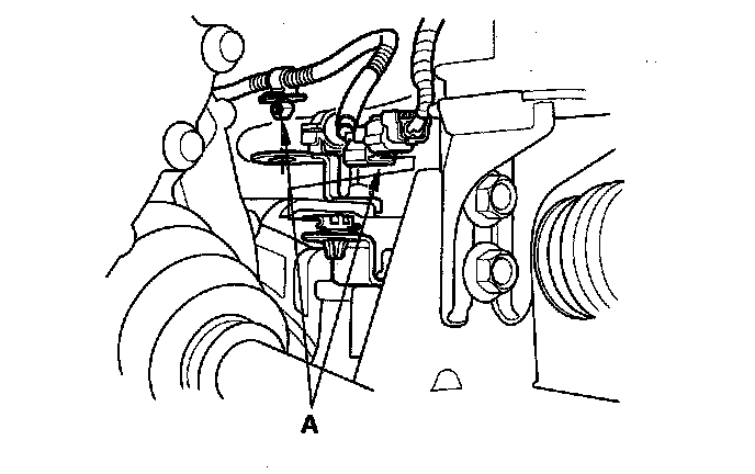 34. Remove the P/S hose (A), then plug the line and the hose.