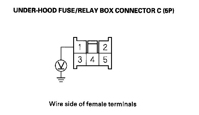 3. Measure the voltage between under-hood fuse/relay box connector terminal C1 and body ground.
