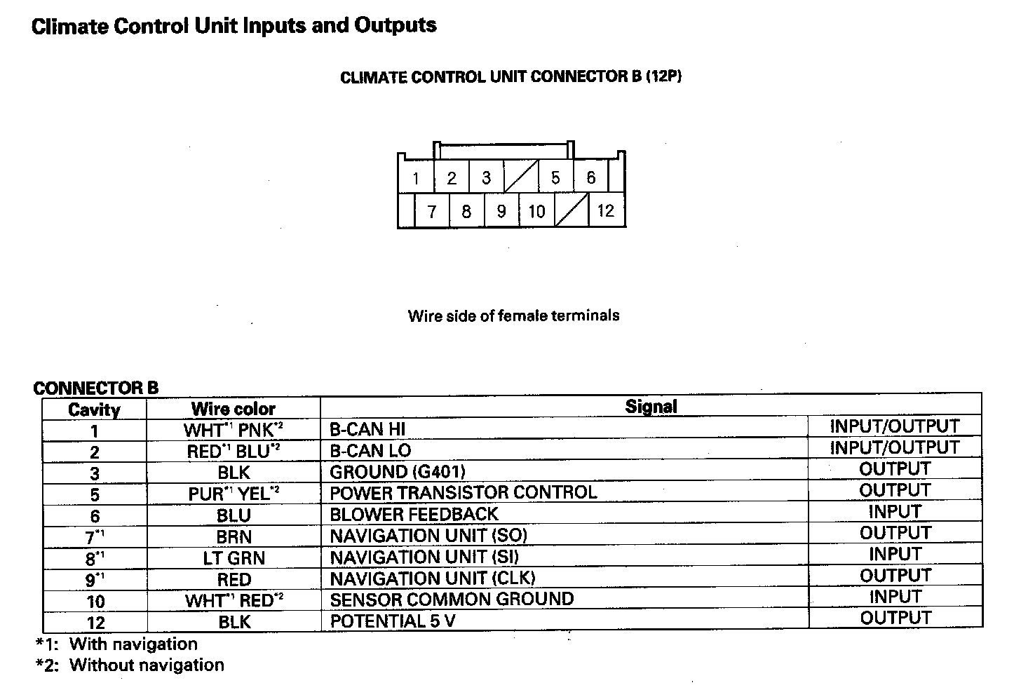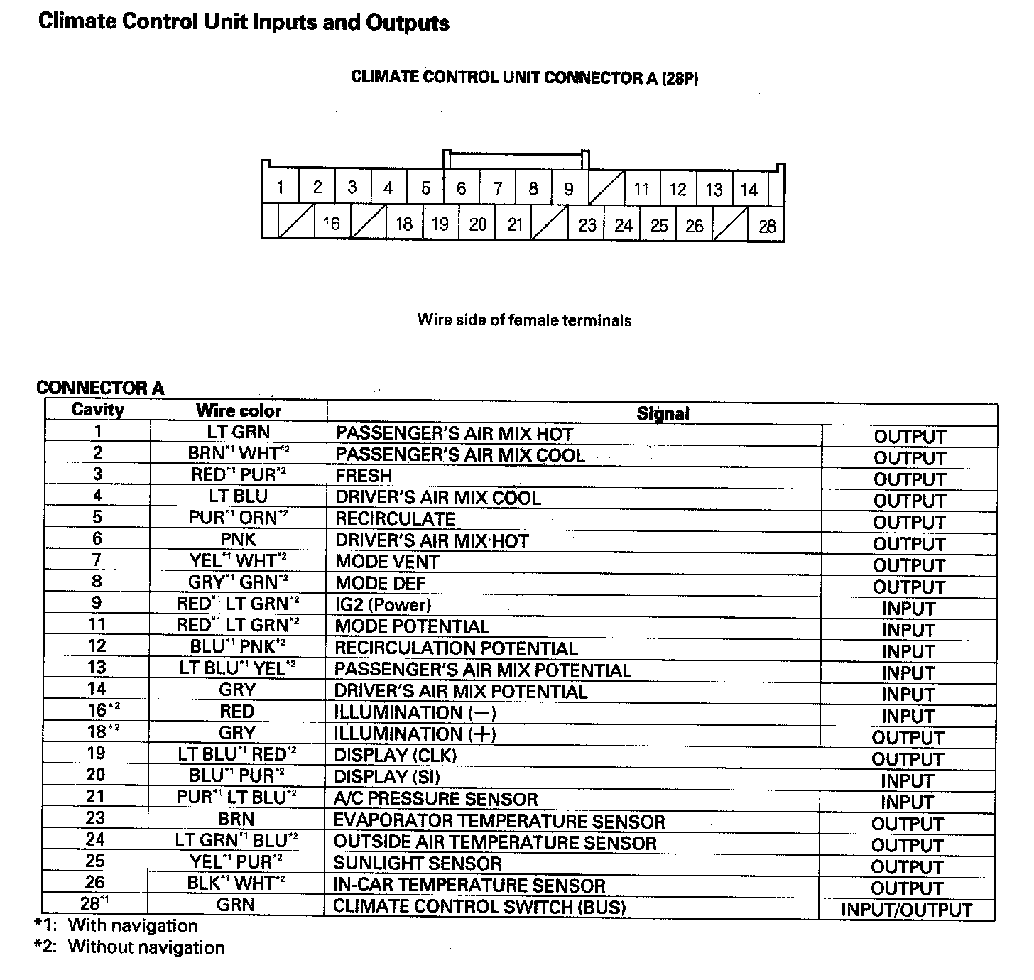 Climate Control Unit Inputs And Outputs